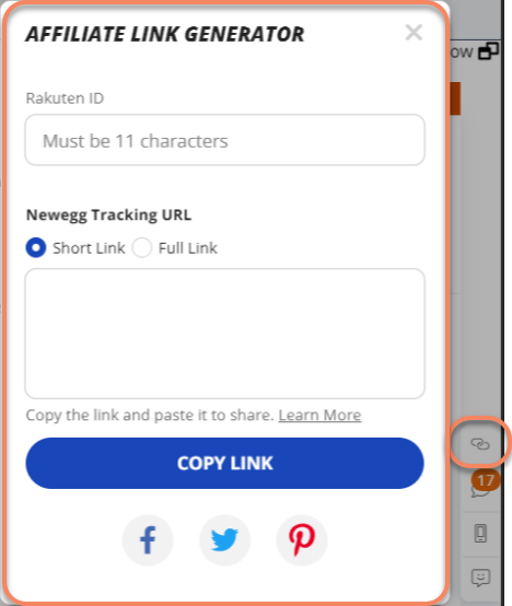 - On Newegg.com paste the Rakuten code into the Newegg Affiliate Link Generator (bottom right-hand side of Newegg)